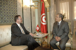 C’est qu’a déclaré, vendredi, à l'agence Tap, Ulrich Brunnhuber, représentant de la BEI en Tunisie, qui assistait aux travaux des 28e Journées de l’Entreprise (Sousse, 6-7 décembre 2013), précisant que cette deuxième tranche va être débloquée après le parachèvement de quelques procédures administratives de la part de la Tunisie. Cette ligne de crédit est ouverte à toutes les petites et moyennes entreprises (PME), quelles que soient leur taille et leur activité (agroalimentaire, informatique télécommunications…). La première tranche de 100 millions euros a été déjà décaissée, cette année, à travers 6 banques intermédiaires. La BEI a investi jusqu'à présent en Tunisie, en terme de capital investissement, quelque 80 millions d’euros. Ces investissements ont concerné les secteurs de l’industrie, des transports, de l’énergie, de l’eau et de l’environnement, de la santé, du capital-investissement et de l’assistance technique. I. B. (avec Tap). Illustration: Ulrich Brunnhuber, représentant de la BEI en Tunisie, reçu par le ministre des Affaires étrangères, Othman Jerandi, le 1er octobre 2013. |