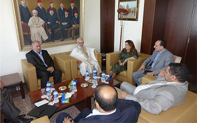 M . Ghannouchi, qui était accompagné, entre autres, de Lotfi Zitoun et Riyadh Bettaieb, membres du bureau exécutif du parti islamiste, a été reçu par Wided Bouchamaoui, présidente de l’Union tunisienne de l’industrie du commerce et de l’artisanat (Utica). La visite, effectuée à l'invitation de la présidente de la centrale patronale, entre dans le cadre des concertations de l’organisation avec les différents acteurs politiques à la veille des élections législatives prévues le 26 octobre 2014. Elle a été une occasion pour Mme Bouchamaoui de transmettre à ses hôtes les vues des opérateurs privés tunisiens concernant le projet de Loi des finances complémentaires 2014 en cours d’examen à l’Assemblée et les solutions aux problèmes économiques actuels du pays.