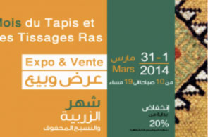 L'Office national de l'artisanat (Ana) www.artisanat.nat.tn organise, en collaboration avec la Fédération nationale de l'artisanat (Fena), le «Mois du tapis et des tissages ras», du 1er au 31 mars 2014. Avec des réductions à partir de 20%.