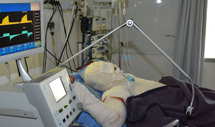 وتمّ نقله إلى مركز الإصابات والحروق البليغة ببن عروس ووضعه تحت العناية المركزة.