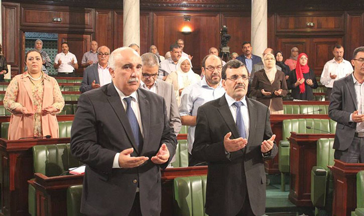 و قد دعا محمد الناصر رئيس مجلس نواب الشعب في بداية الجلسة العامة المنعقدة صباح اليوم الى تلاوة الفاتحة ترحّما على روح الشهيد مجدي الحجلاوي الملازم أوّل بسلك الأمن الوطني التابع لمنطقة الأمن الوطني بسيدي بوزيد، الذي استشهد أثناء ادائه لواجبه الوطني في خدمة تونس.