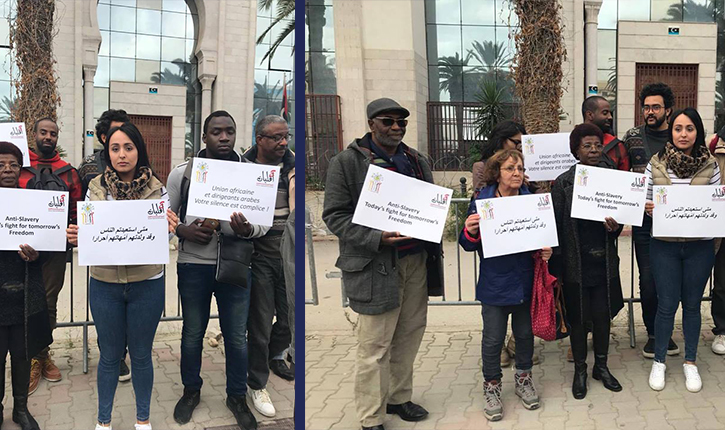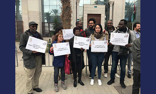 نظّمت اليوم الخميس 23 نوفمبر الجاري كلّ من الجمعيّة التونسيّة لمساندة الاقليّات وجمعيّة منامتي وقفة احتجاجية أمام سفارة ليبيا بتونس تنديدا بالجرائم العنصريّة المقترفة على الأراضي الليبيّة في حق المهاجرين من بلدان القارة الافريقيّة .