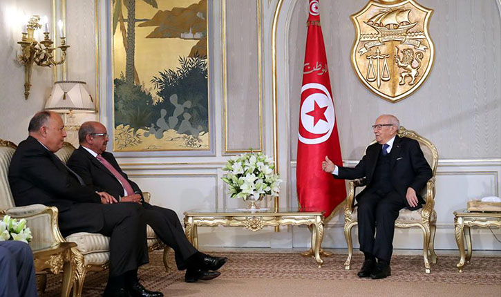 استقبل رئيس الجمهورية الباجي قايد السبسي، اليوم الاثنين 18 ديسمبر 2017 بقصر قرطاج، كلاّ من عبد القادر مساهل، وزير خارجية الجزائر، وسامح شكري، وزير خارجية مصر.