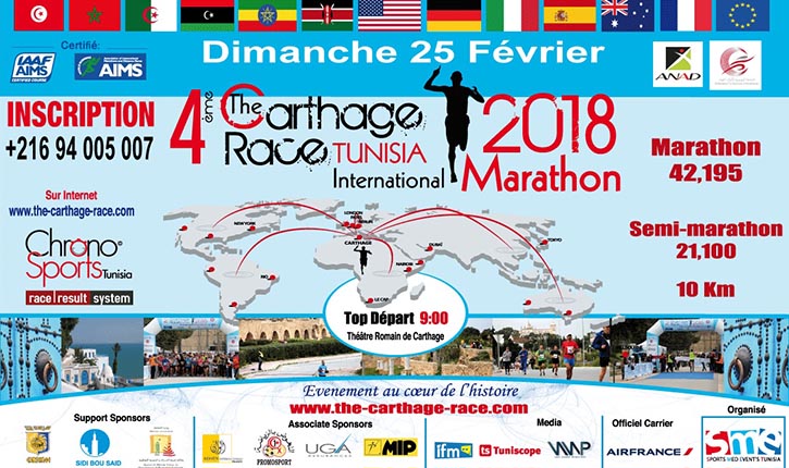 سيتواصل التسجيل في الدورة الرابعة لماراطون قرطاج الدولي الى غاية 15 فيفري 2018 .