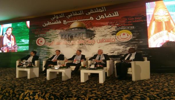 في ختام الملتقى النقابي الدولي الذي نظمه الاتحاد التونسي للشغل اصدر  مساء اليوم السبت النقابيون بيان تونس لدعم القضية الفلسطينية و الرد على قرار ترامب الاعتراف بالقدس عاصمة لاسرائيل.