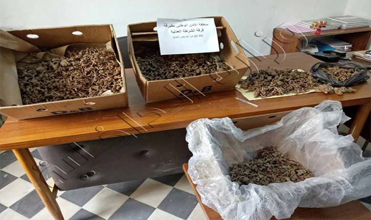 وبتفتيش منزله تمّ العثور على 20 كلغ من مادة “المرجان” مخفية بإحكام داخل قنّ دجاج. بالتحري مع المعني أفاد أنه كان ينوي التفريط في الكمية المحجوزة بمبلغ مالي قدره 15 ألف دينار. بمراجعة النيابة العمومية أذنت بحجز كمية “المرجان” وإتخاذ الإجراءات القانونية في شأن المعني.