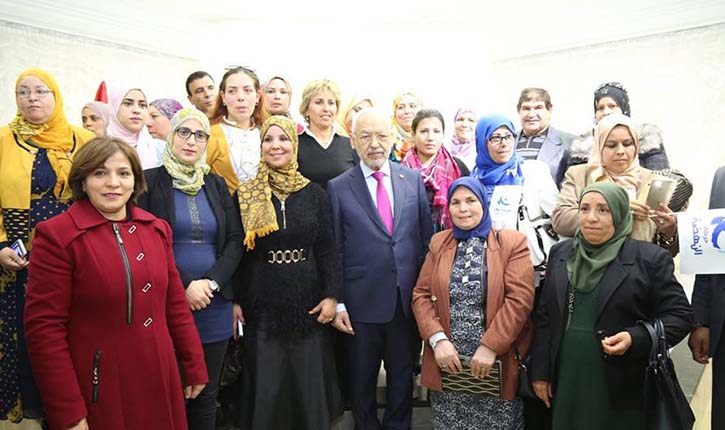 حضر رئيس حركة النهضة  راشد الغنوشي مساء السبت على لقاء نظمه المكتب الجهوي للمرأة والأسرة بمنوبة خصص للتعريف بالمترشحات على قائمات الحركة للانتخابات البلدية عن الولاية .