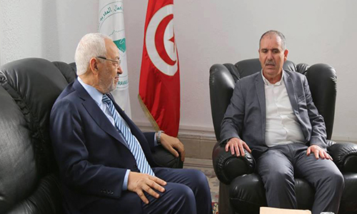 و تناول اللقاء وفق بلاغ نشرته الصفحة الرسمية لحركة النهضة على الفايسبوك تدارس آخر مستجدات الأوضاع على الساحة الوطنية .