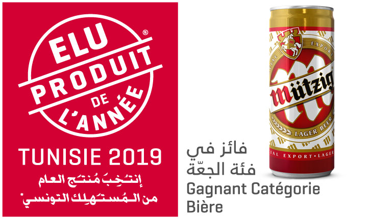 تسجّل علامة ” Mützig ” حضورها منذ 30 عامًا في العالم ومنذ 4 سنوات في تونس . وتمنح هذه العلامة التي تم اختيارها “منتج العام ” الكلمة للمستهلكين كل عام وتسمح لهم بالتصويت لفائدة منتجاتهم المفضّلة حسب معايير ثلاثة وهي : الجاذبية والابتكار والإرضاء .