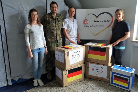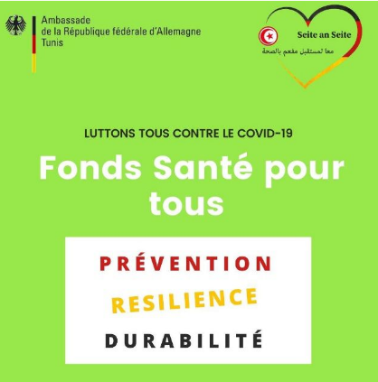 فإن الدعم الذي تقدمه ألمانیا من أجل إیجاد حلول هادفة وعملیة ومبدعة لدعم الجهود الوطنیة في مكافحة 19-Covid ، وكذلك العدید من الشركات الألمانیة المتواجدة في تونس ، یغطي مجموعة من التدخلات التي تهدف إلى تعزیز الخدمات الصحیة ، وتشجیع المجتمع المدني ، وتعزیز البحث العلمي والابتكار ، وتعزیز القدرات اللوجستیة للجماعات المحلیة في