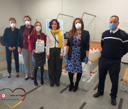 الغرفة التونسیة الألمانیة للصناعة والتجارة (AHK (شریك مهم في تنسیق الأنشطة. على سبیل المثال ، قامت شركة VAN LAACK في بنزرت بتغییر إنتاجها على المدى القصیر وتقوم بالفعل بتصنیع كمامات واقیة.