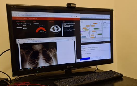 في هذا السیاق ، تم تطویر منصة على الإنترنت قادرة على تشخیص 19-Covid باستخدام الذكاء الاصطناعي منذ منتصف مارس من قبل الباحث التونسي د. مصطفى حمدي وفریقه المكون من طلاب كلیة الهندسة INSAT. هذه الأداة قادرة على تشخیص الأشعة السینیة لرئتي الأشخاص الذین من المحتمل أن یتأثروا بـ 19-Covid وكشف العلامات الموجودة في المتضررین.
