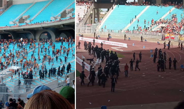 و بسبب الغاز المسيل للدموع الكثيف الذي أطلقه الأمن و توتر الاجواء، لاعبو الترجي و الأهلي المصري يوقفون الإحماء ويعودون إلى حجرات الملابس و وفق آخر الانباء التي تاتينا من رادس، تم تأخير المقابلة بساعة.