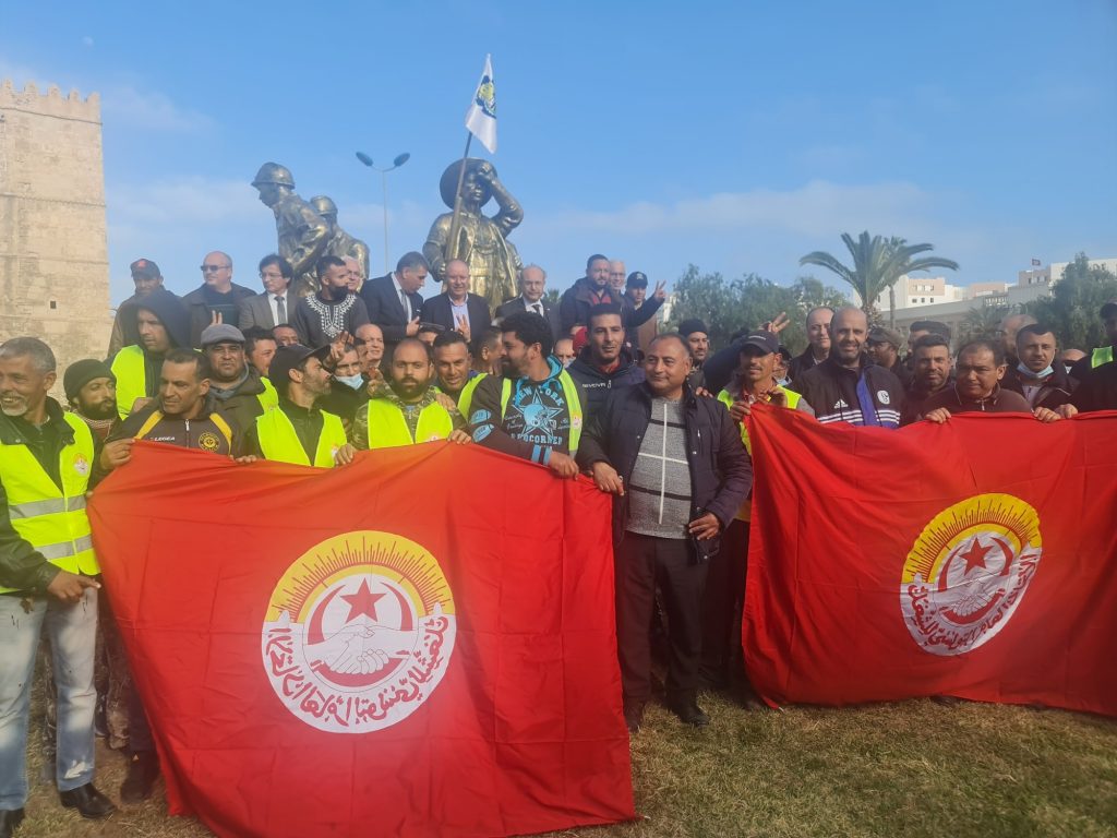 التقى الأمين العام نور الدين الطبوبي عشية اليوم الاثنين 14 مارس 2022 عمال البلدية بصفاقس بمناسبة تدشين مجسم يكرم عامل البلدية وتضحياته.