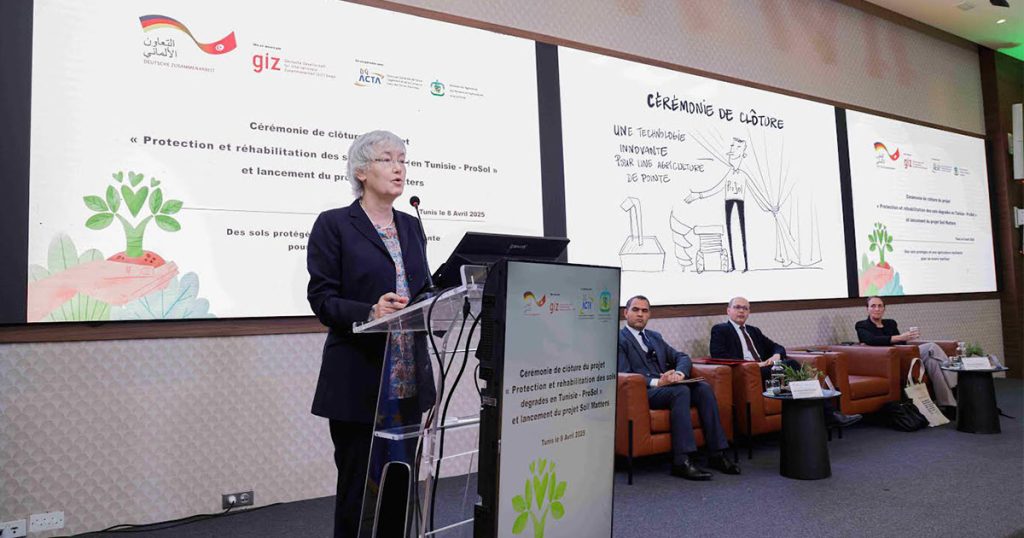 انتظم يوم الثّلاثاء 8 أفريل 2025 بتونس العاصمة حفل اختتام مشروع “حماية وإعادة تأهيل التّربة المتدهورة في تونس” ProSol. أكثر من خمس سنوات من التّوعية والتّحسيس والعمل التّشاركيّ من أجل تصرّف مستدام في الأراضي الفلاحيّة.