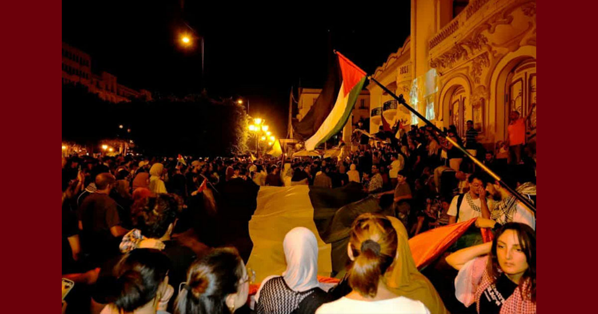 *دعوة كل القوى الوطنية والمنظمات والاحزاب وأحرار هذا الوطن إلى تنظيم وقفات احتجاجية ومسيرات شعبية داعمة لأسطول الصمود وضد التطبيع في كل الجهات وتوسيع حملات المقاطعة الشاملة للكيان الصهيونية.