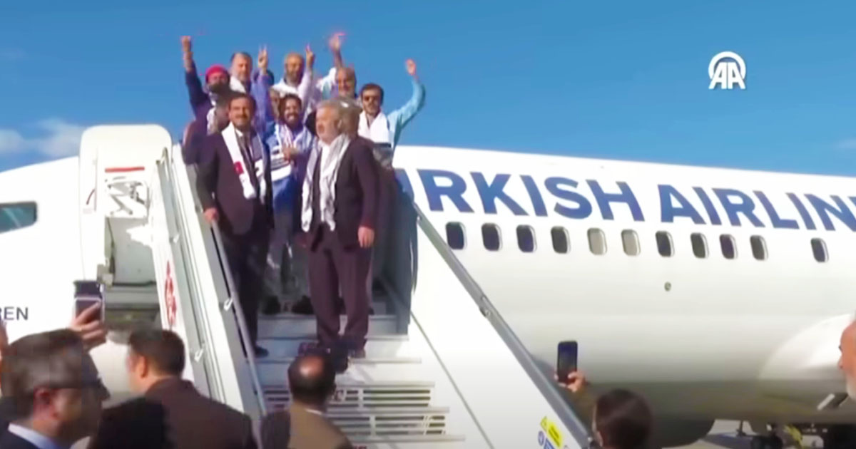 “علم الفريق القانوني المساند لاسطول الصمود المغاربي، من خلال الفريق القانوني المتابع لأوضاع مشاركينا المختطفين لدى العدو الصهيوني، أن الدفعة الأولى منهم تصل الآن على متن رحلة للخطوط الجوية التركية إلى مطار إسطنبول.