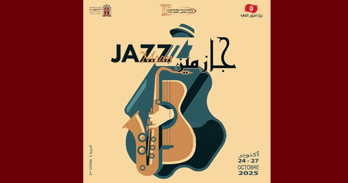 تحت اشراف المندوبية الجهوية للشؤون الثقافية بتونس وفي إطار افتتاح الموسم الثقافي 2025/ 2026 ينظم النادي الثقافي الطاهر الحداد الدورة 2 لمهرجان جازمين وذلك من 24 الى27 اكتوبر 2025.