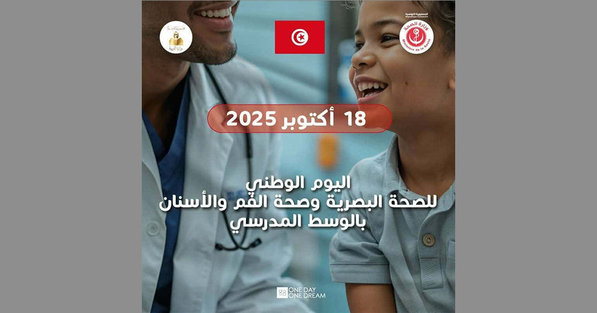 - تنطلق يوم السبت 18 أكتوبر الجاري الأيام الوطنيّة لصحة البصر وصحة الفم والأسنان بالوسط المدرسي في مختلف ولايات الجمهوريّة.