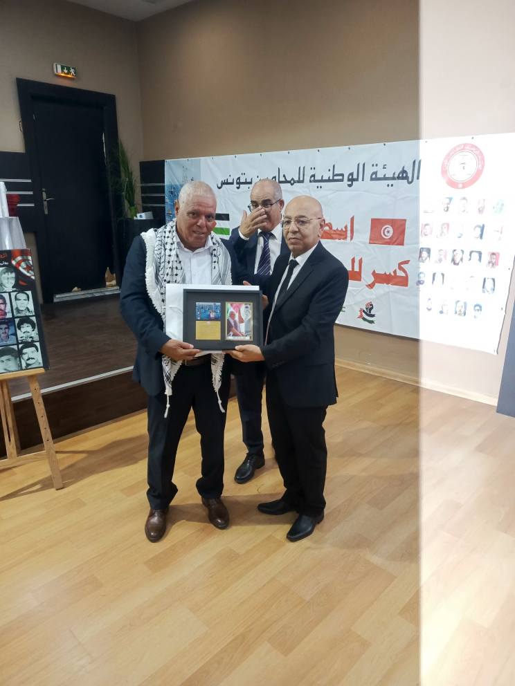 انتظم اليوم 16 اكتوبر 2025 بدار المحامي حفل تكريم الهيئة الوطنية للمحامين بتونس لعدد من المشاركات و المشاركين في أسطول الصمود لفك الحصار عن غزة، تقديرًا لمواقفهم الشجاعة ونضالهم الإنساني في مواجهة الظلم والحصار المفروض على الشعب الفلسطيني ، و لفريق الاسناد القانوني من المحاميات و المحامين لما بذلوه من مجهود في مرافقة المشاركين و تكوينهم القانوني و اسنادهم و متابعة أوضاعهم طيلة مسار الرحلة.