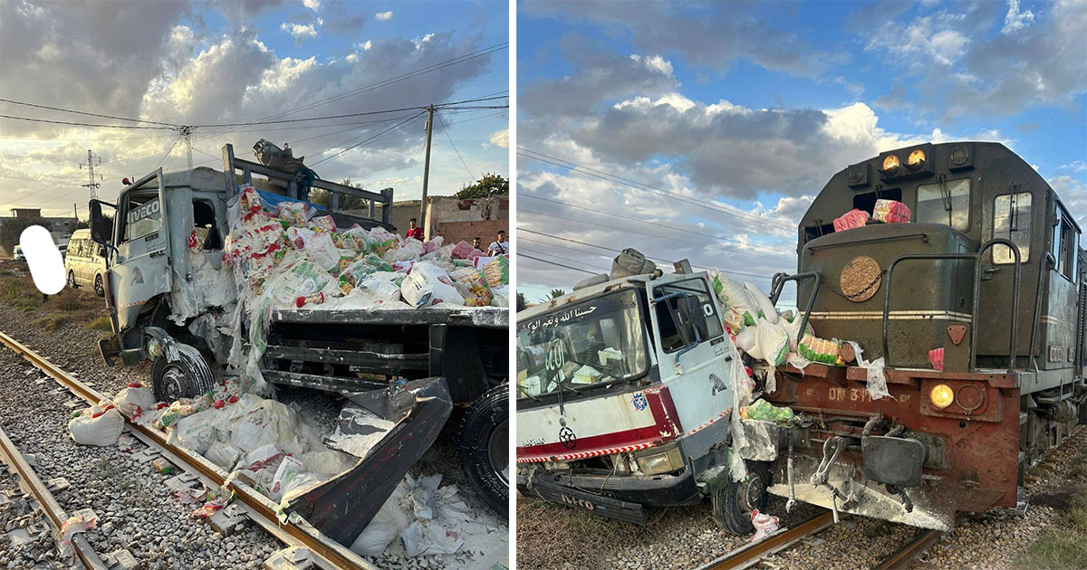 *اليوم اصطدم قطار قادم من صفاقس في اتجاه قابس بشاحنة لنقل المواد الغذائية.