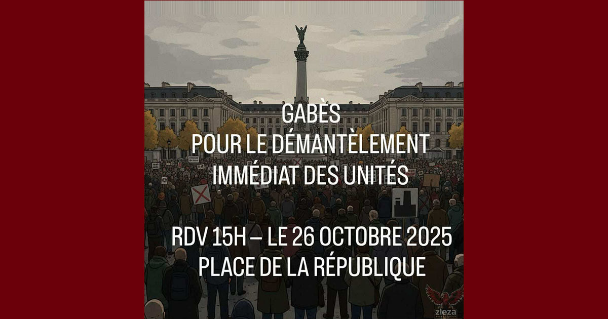 قررت الجالية الڨابسية بفرنسا تنظيم وقفة تضامنية يوم 26 أكتوبر 2025 على الساعة الثالثة بعد الظهر “تضامنًا مع أهلنا في ڨابس بعد المأساة اللي سبّبها المجمع الكيميائي”.