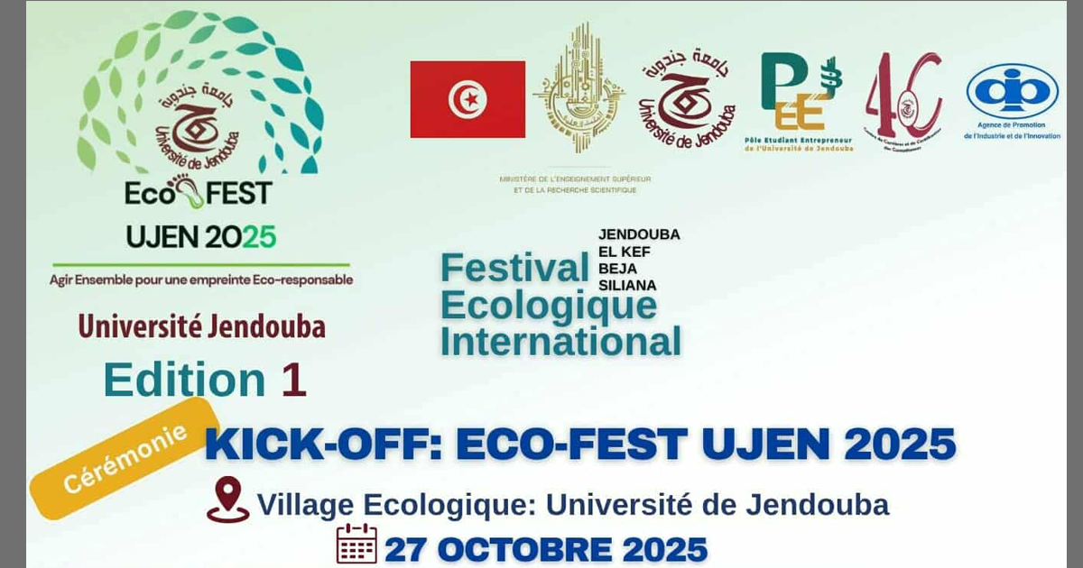 تنظّم جامعة جندوبة التي يرأسها الاستاذ هشام السبيعي صباح يوم الاثنين 27 أكتوبر الجاري بمقرّها فعاليات الدورة الاولى لـ”المهرجان الدولي للأثر البيئي” Kick-off: Eco-FEST UJEN 2025.
