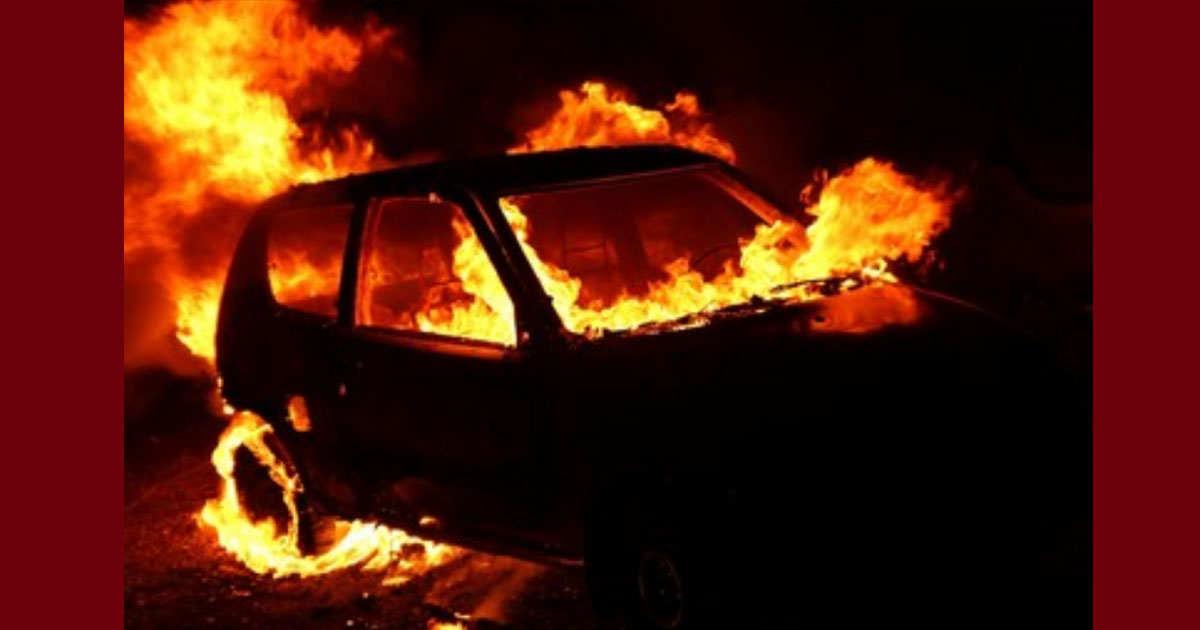 على اثر اصطدام مساء اليوم الاثنين شاحنة ثقيلة بسيارته، صاحبها يضرم النار فيها و يلوذ بالفرار.