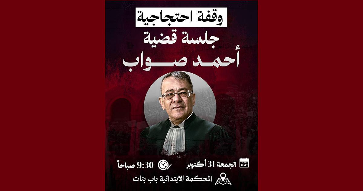 تزامنًا مع الجلسة الحكمية في قضية أحمد صواب، تدعو لجنة المساندة إلى وقفة إحتجاجية أمام المحكمة الابتدائية بباب بنات، وذلك يوم الجمعة 31 أكتوبر ابتداءً من الساعة 09:30 صباحًا.