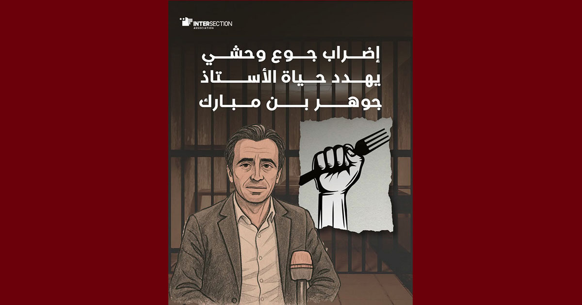 تتابع جمعية تقاطع من أجل الحقوق والحريات ببالغ القلق تدهور الحالة الصحية للأستاذ جوهر بن مبارك، المعتقل منذ أكثر من سنتين على خلفية ما يُعرف إعلاميًا بـ “قضية التآمر على أمن الدولة”، وذلك إثر دخوله في إضراب جوع وحشي منذ يوم 29 أكتوبر 2025 احتجاجًا على ما يتعرض له من انتهاكات جسيمة لحقوقه في محاكمة عادلة ومعاملة كريمة.