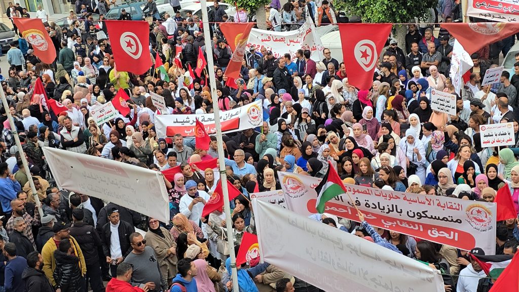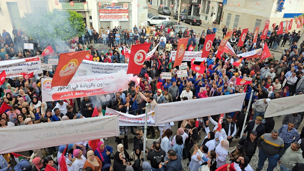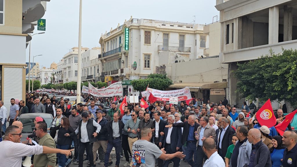 فيديو ثان: نفذ عمال ما لا يقل عن 60 مؤسسة بجهة صفاقس مسيرة تزامنًا مع الإضراب العام و ذلك احتجاجاً على “حرمان العمال من حق الزيادة في الأجور وحرمانهم من المفاوضات الاجتماعية القانونية ، في ظل غلاء متواصل للمعيشة وتدهور المقدرة الشرائية”.