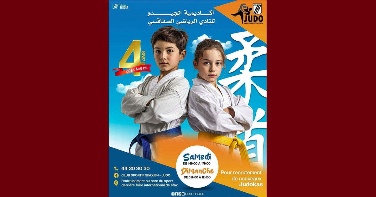 تونسرياضةالسي اس اس يعلن عن افتتاح أكاديمية جيدو بداية من 4 سنوات70 0 19 نوفمبر، 202519 نوفمبر، 2025 يعلم النادي الرياضي الصفاقسي أنه سيتم إفتتاح أكاديمية للجيدو بداية من عمر 4 سنوات مع مدربين مختصين في هذه الرياضة. لمزيد التفاصيل يرجى الاتصال📞 بالرقم التالي:44 30 30 30