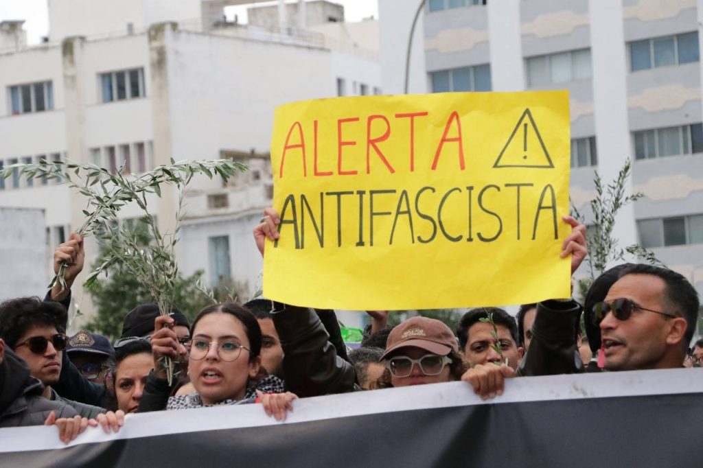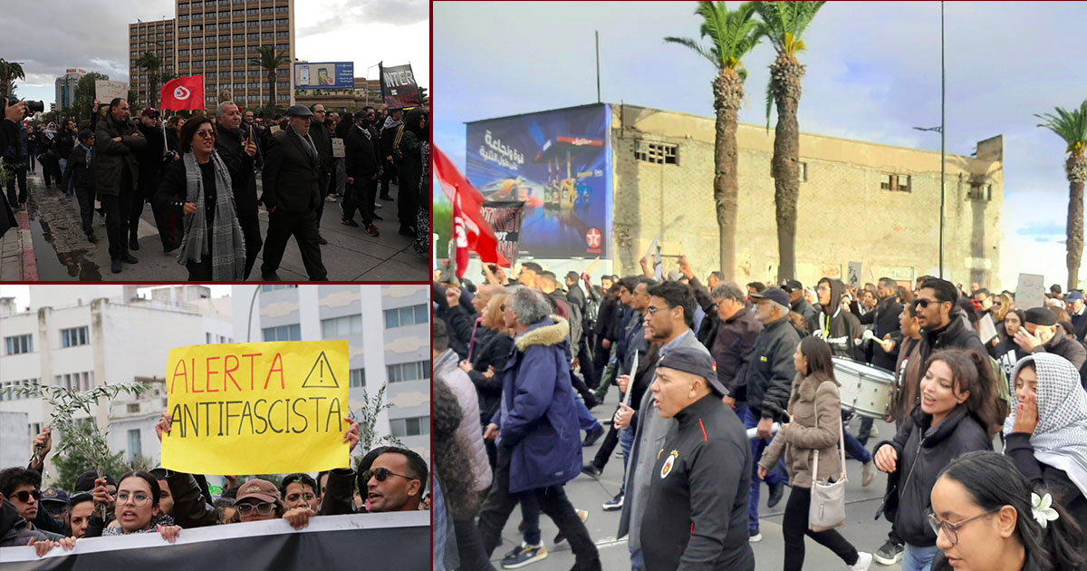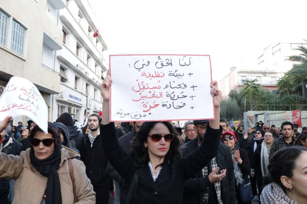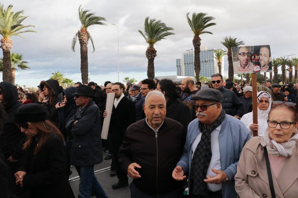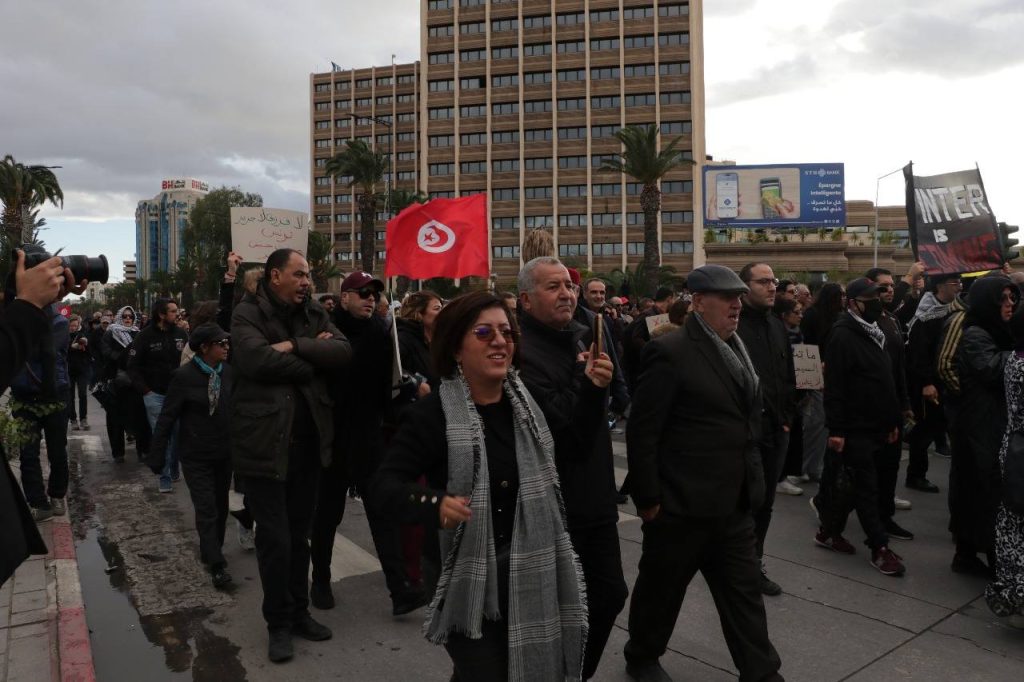 جميعهم أكدوا بأن الحكم اليوم لم ينجح في إدارة البلاد. اللباس الموحد، كان باللون الأسود. الطقس كان باردا. الأمطار تتهاطل و من حين لحين تتوقف.. وخيط رفيع يشق السحب قبل أن يحجب مجددا. الوضع الجوي الرديء لم يكن حاجزا و لم يثني المواطنين من الخروج. هم نساء و رجال، صغار وكبار و الكثير من الشباب و كأنه تمسك بزمام الأمور… هم سياسيون و ناشطون في المجتمع المدني و حقوقيون و اعلاميون ينددون ب”ظلم و قهر السلطة الحاكمة”، هذه السلطة “التي تحكم بقوة البوليس” من بين شعاراتهم.. و من شارع محمد الخامس، تحركت الحشود التي أمنها بأعداد كبيرة البوليس بعضهم بالزي الرسمي و آخرون بالزي المدني، من بينهم من حشر نفسه في صفوف المحتجين الذين تجمعوا امام مقر المجمع الكميائي التونسي أين طالبوا بتفكيك الوحدات في قابس التي تعيش في بيئة ملوثة بسبب ما يلفظه المجمع في الهواء و البر و البحر… وبعد توقف دام اكثر من نصف ساعة أمام مقر المجمع الكيميائي، و الليل يسدل ستاره…، تواصلت المسيرة التي نظمتها أطراف شبابية داعمة للأستاذ احمد صواب المحامي و القاضي الاداري الذي تم الحكم عليه مؤخرا في 7 دقائق ب5 سنوات سجنا و 3 سنوات مراقبة ادارية… ثم وقفة و شماريخ و طبلة في البلفيدير… وتكاثرت هنا الشعارات مرددة فشل المنظومة وان الانجاز الوحيد للرئيس في عامه السابع و بحكمه المنفرد هو اصلاح “البيسين”.