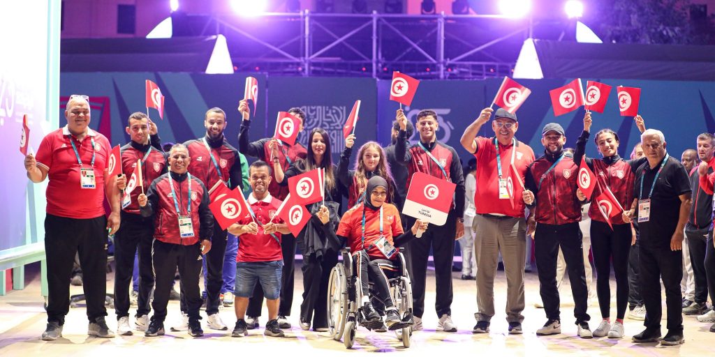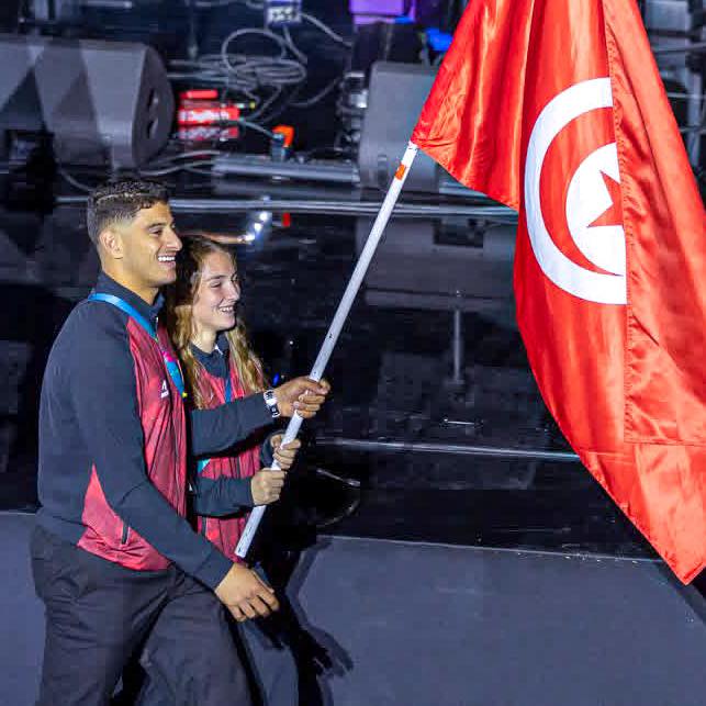بطلنا الاولمبي الفائز بذهبية الألعاب الاسلامية في المبارزة بالسيف فارس الفرجاني صحبة البطلة الواعدة في المصارعة شهرزاد العياشي هما من رفعا العلم في حفل الاختتام الف مبروك لتونس برافو لكل عناصر الوفد التونسي.