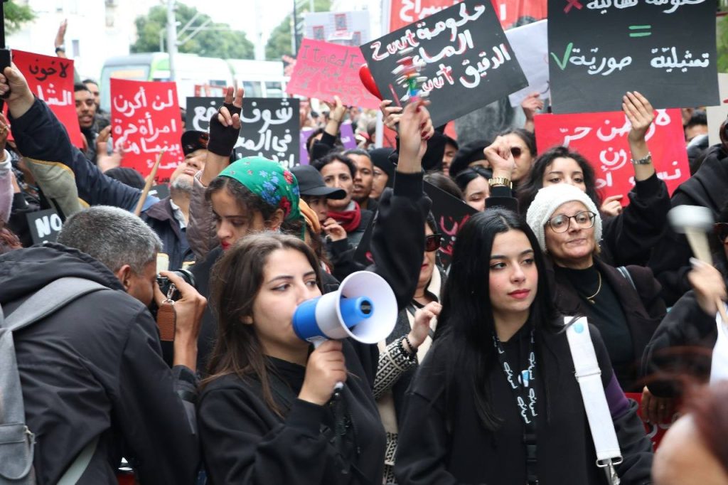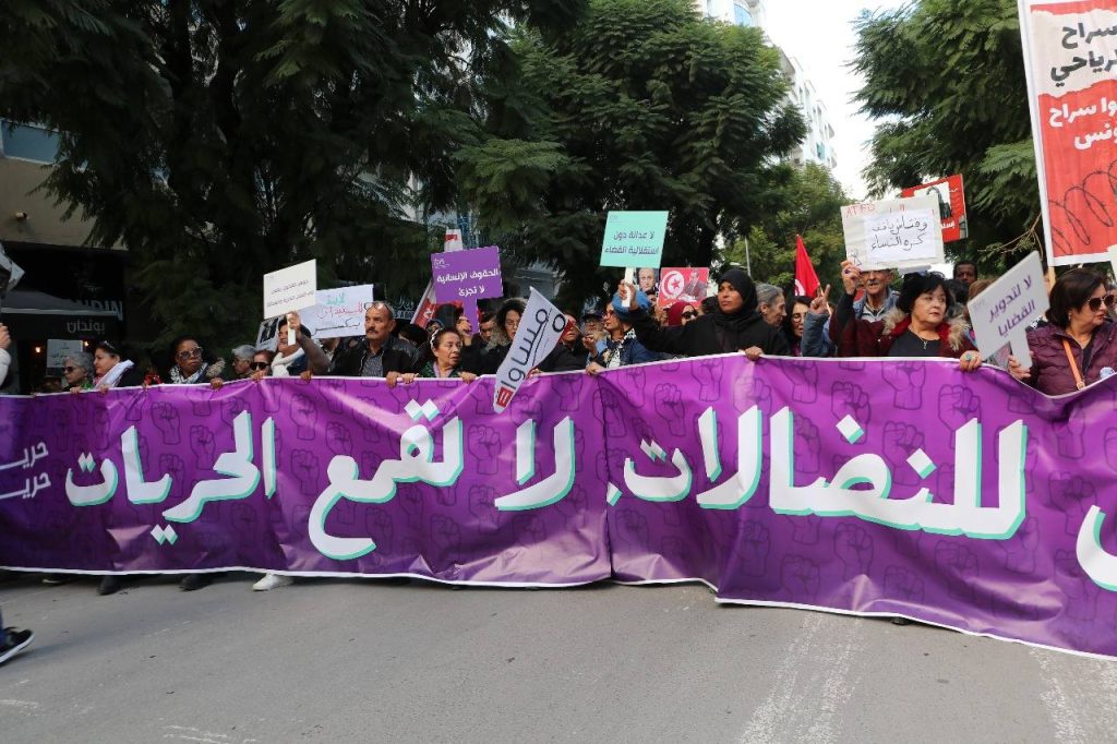 و الخبر، الخبر التراند هو تنفيذ قرار الحكم على المناضلة النسوية شيماء عيسى في عملية اختطاف من جملة من الأمنيين بزي مدني… و رغم ما حدث، تواصلت المسيرة التي انطلقت من البلفيدير و توقفت أمام وزارة المرأة بعد منعها من الوصول الى شارع باريس و شارع بورقيبة بالعاصمة… أين تقام احتفالات اختتام الدورة 26 لأيام قرطاج المسرحية.