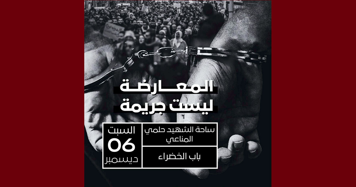 موعدنا: السبت 6 ديسمبر – ساحة الشهيد حلمي المناعي – باب الخضراء.