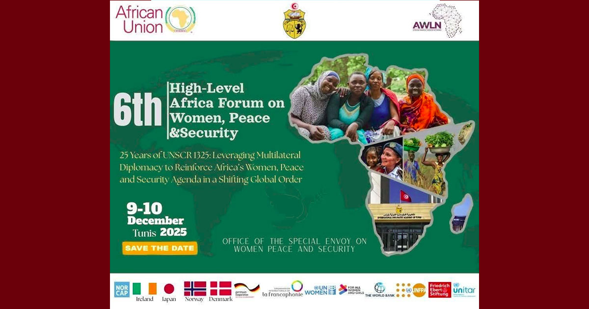 تحتضن بلادنا يومي 9 و10 ديسمبر الجاري، بمقر الأكاديمية الدبلوماسية الدولية بتونس، الدورة العادية السادسة للمنتدى الإفريقي رفيع المستوى حول المرأة والسلم والأمن التي تنتظم بالتعاون مع الاتحاد الإفريقي حول محور “خمس وعشرون سنة على قرار مجلس الأمن عدد 1325: تعزيز الدبلوماسية متعددة الأطراف لترسيخ أجندة المرأة والسّلم والأمن في إفريقيا في ظل نظام عالمي متغير”.