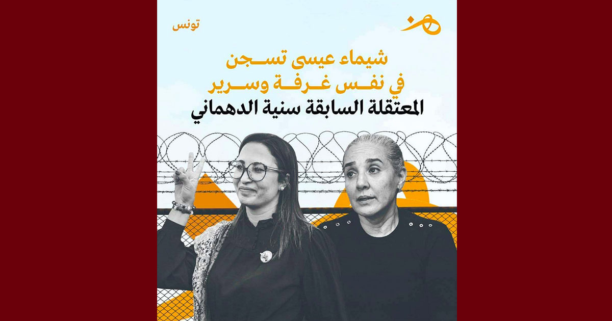 أفاد المحامي سمير ديلو خلال ظهور إعلامي أن الناشطة الحقوقية النسوية والمعارضة السياسية شيماء عيسى أودِعت في نفس زنزانة وسرير المحامية والإعلامية المعتقلة السابقة سنية الدهماني.