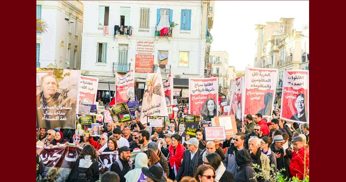 من بين المشاركين في مسيرة تحمل شعار “المعارضة ليست جريمة” تم تقدير عددها بأكثر من 3 آلاف نسمة (انطلقت عشية اليوم السبت 6 ديسمبر 2025 من باب الخضراء و وصولا الى شارع بورقيبة بتونس العاصمة) شارك فيها أحزاب و منظمات حقوقية و أقطاب من المناضلات و المناضلين، شيبا و شبابا، حركة حق كانت متواجدة.