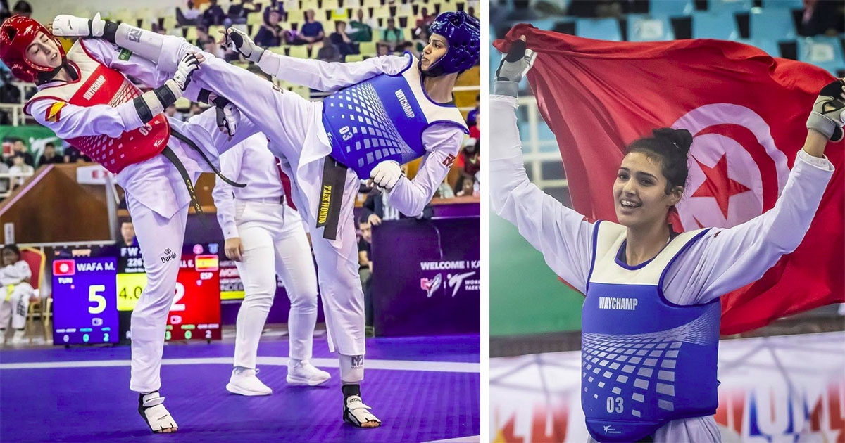 تمكّنت البطلة التونسية وفاء مسغوني، اليوم السبت 06 ديسمبر 2025، من التربّع على عرش منافسات وزن -62 كلغ في رياضة التايكوندو، حيث توجت بالميدالية الذهبية بعد فوزها في النهائي أمام اللاعبة الإسبانية Elsa Secanell بنتيجة جولتين لصفر (2:8 / 1:3)، خلال اليوم الرابع والأخير لبطولة العالم للتايكواندو تحت 21 سنة، المقامة حاليا في العاصمة الكينية نيروبي.
