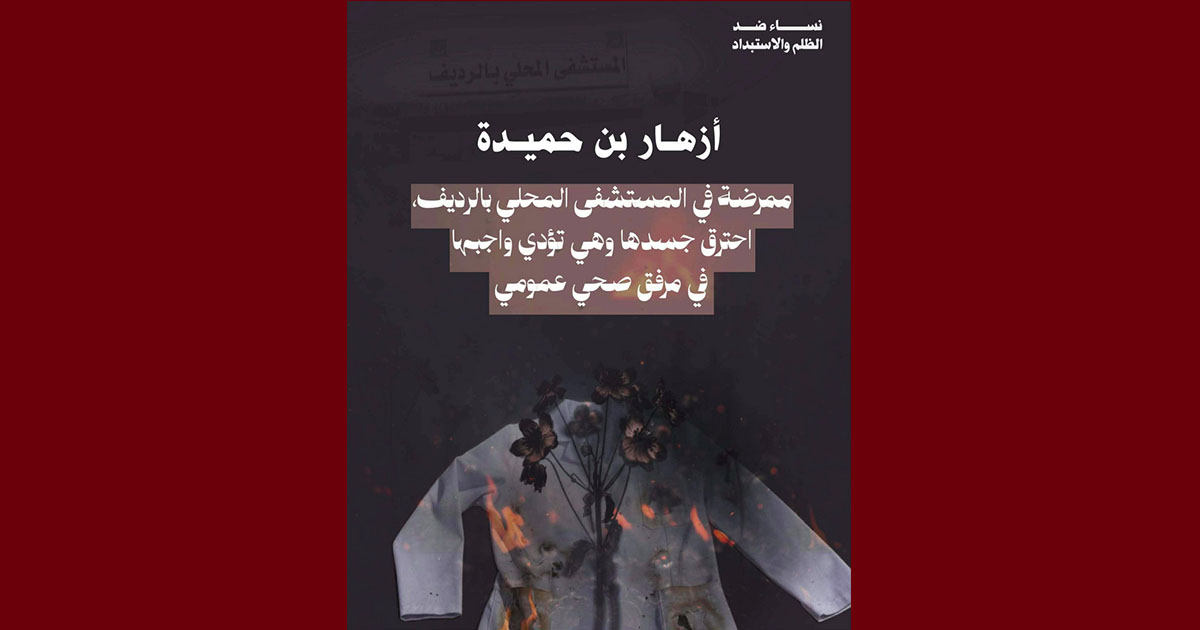 نساء ضد الظلم و الاستبداد: “تحترق النساء في بيوتهنّ وأماكن عملهنّ وحتى في الفضاءات المفترض أن تكون آمنة، وأزهار بن حميدة، الممرّضة بالمستشفى المحلي بالرديف،