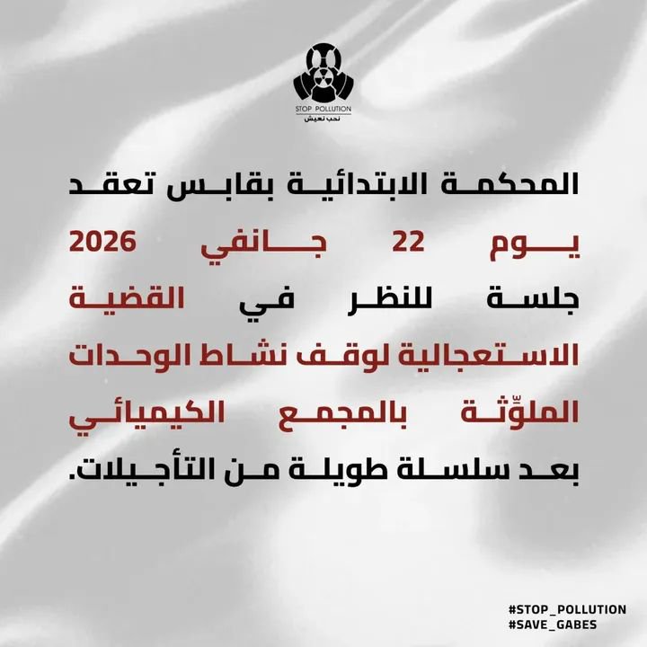 منذ أكتوبر 2025، وقضية الوحدات الملوثة بالمجمع الكيميائي بقابس تدور في حلقة مفرغة من التأجيلات، رغم طابعها الاستعجالي وخطورة الوضع البيئي والصحي بالجهة.