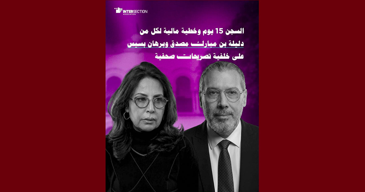 إذ تعتبر جمعية تقاطع أنّ تتبّع ومحاكمة صحفي ومحامية بسبب حوار تلفزي، دون تحديد دقيق وواضح للأقوال أو العبارات التي يُدّعى أنها تُكوّن أفعالًا مُجرّمة، يُشكّل مساسًا خطيرًا بمبادئ الشرعية الجزائية وضمانات المحاكمة العادلة. وهو ما يُفرغ مبدأ “لا جريمة ولا عقوبة إلا بنص” من مضمونه، ويفتح الباب أمام تتبّعات فضفاضة تُوظَّف لتقييد حرية الرأي والتعبير. كما تعتبر جمعية تقاطع أنّ هذا الحكم يندرج في سياق خطير يتّسم بتوسيع دائرة التجريم واستعمال النصوص الجزائية، ولا سيما المرسوم عدد 54 لسنة 2022، لتقييد حرية الصحافة والتعبير واستهداف الصحفيين/ات والمحامين/ات على خلفية آرائهم وتصريحاتهم في الشأن العام، بما يتعارض مع أحكام الدستور والالتزامات الدولية باحترام حقوق الإنسان، خاصة العهد الدولي الخاص بالحقوق المدنية والسياسية.