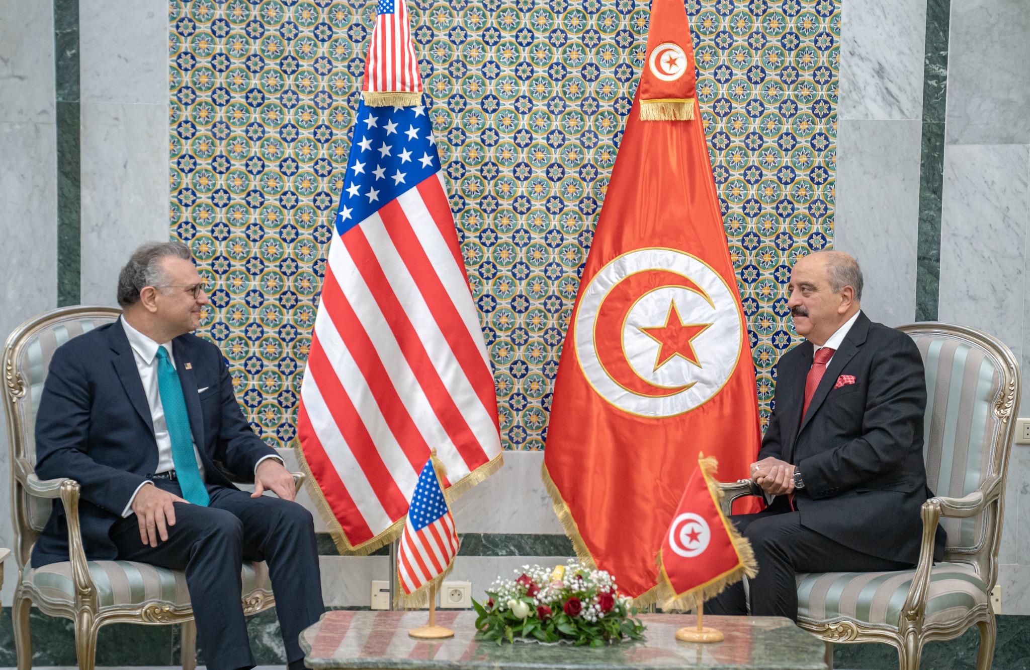 استقبل وزير الشؤون الخارجية والهجرة والتونسيين بالخارج، السيد محمد علي النفطي، اليوم الاثنين 26 جانفي 2026، السيد مسعد بولس، كبير مستشاري الرئيس الأمريكي دونالد ترامب المكلّف بالشؤون العربية والشرق الأوسط وإفريقيا، الذي يؤدي زيارة رسمية إلى تونس، مرفوقًا بالسيدين كايل ليستون، نائب مساعد وزير الخارجية لشمال إفريقيا وشبه الجزيرة العربية بالنيابة، وديفيد لينفيلد، رئيس ديوان السيّد بولس. وحضر اللقاء السيد بيل بزّي، سفير الولايات المتحدة الأمريكية بتونس.