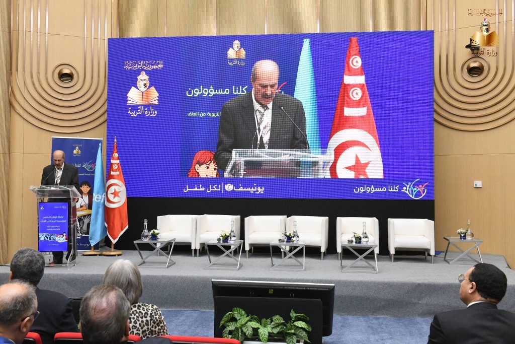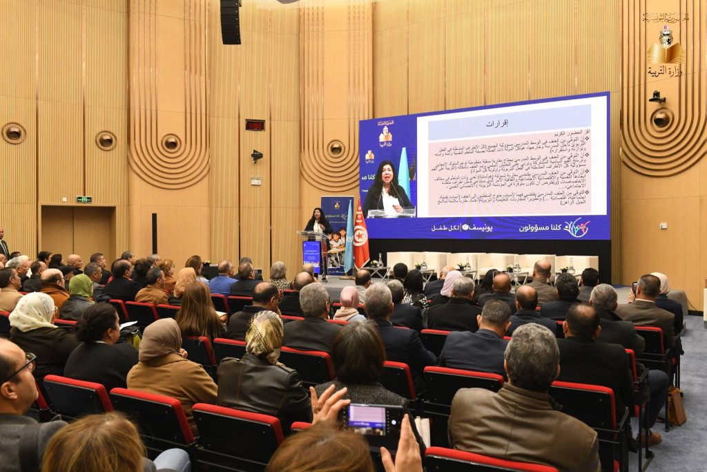 تحت اشراف وزير التربية السيد نور الدين النوري اختتمت صباح اليوم الأربعاء 04 فيفري 2026 بالأكاديمية الدبلوماسية بتونس، أشغال الندوة الوطنية العلمية لإرساء الخطة الوطنية لتحصين المؤسسة التربوية من العنف، وذلك بحضور عدد من إطارات الوزارة مركزيا وجهويا ، وممثلي عدد من الوزارات المتدخلة، إلى جانب ممثلين عن منظمة الأمم المتحدة للطفولة “اليونيسيف”، وثلة من المربين والخبراء وممثلي المجتمع المدني.