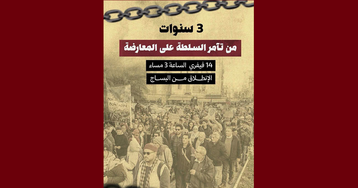 لن تمرّ الذكرى الثالثة لانطلاق الأبحاث وبداية الإيقافات السياسية في «قضية التآمر»، دون أن نكون في الساحات والشوارع للاحتجاج على الظلم والاستبداد وتجريم العمل السياسي، ومن أجل إطلاق سراح المعتقلين السياسيّين.