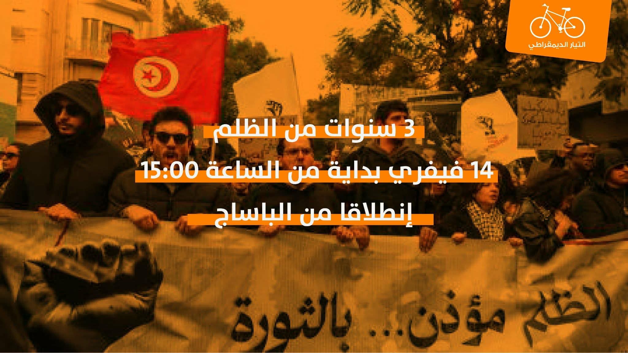 ثلاثة سنوات خلت منذ اعتقال المعارضين السياسيين في قضية التآمر، التيار الديمقراطي يدعو للمشاركة بكثافة في مسيرة السبت 14 فيفري