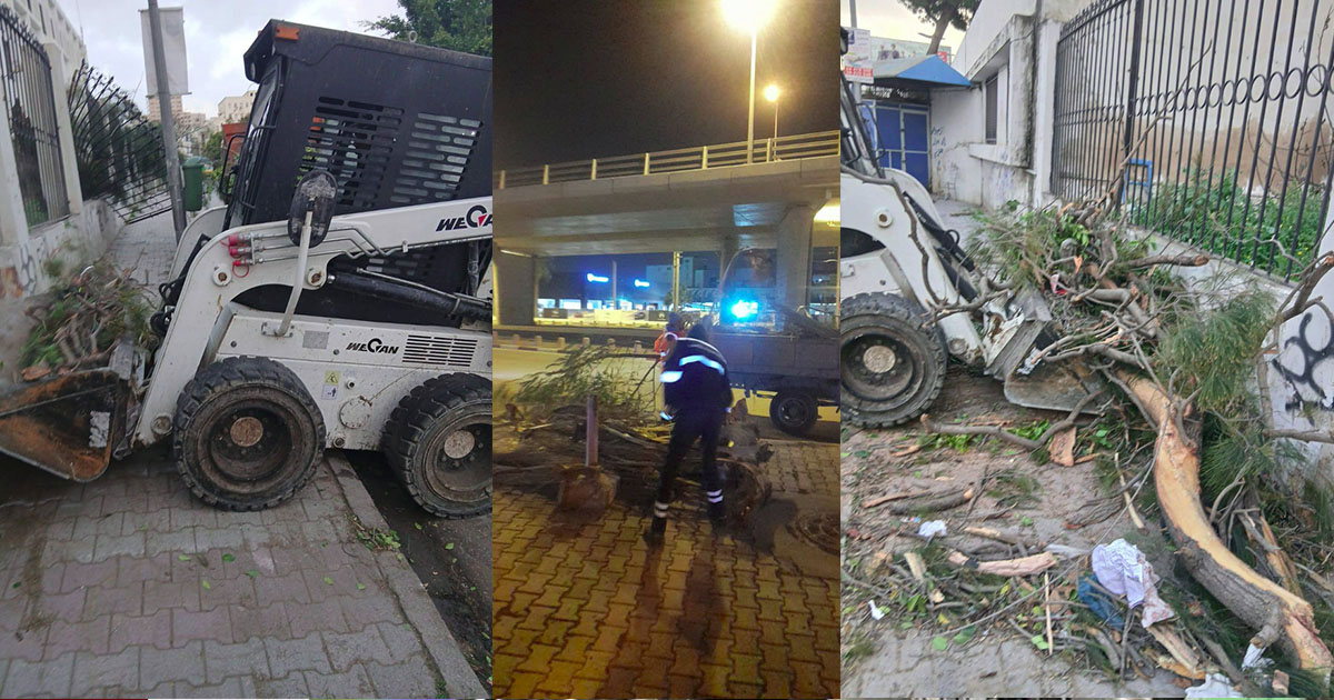 تونسمجتمعبلدية تونس: أشجار تسقط على الطريق من قوة الرياح و المصالح تتدخل…70 0 13 فبراير، 202613 فبراير، 2026 تدخلات مساء اليوم الخميس 12 فيفري للمصالح البلدية لإزالة الأشجار التي سقطت على الطريق العام بفعل الرياح القوية وذلك في عدة مناطق تابعة للدوائر البلدية.