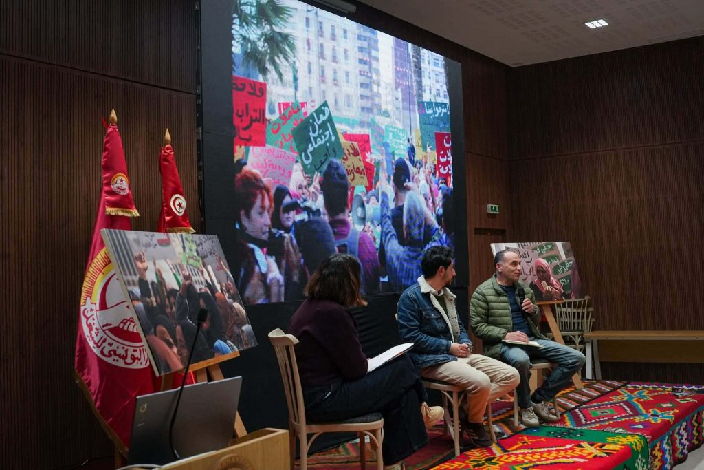 أصوات نساء: عودة بالصور من ندوة تقديم دراسة حول الحقوق الاقتصادية والاجتماعية للنساء، يوم 13 فيفري بمقر الاتخاد العام التونسيللشغل، بحضور حراك أصوات عاملات الفلاحة، وممثلين عن الاتحاد العام التونسي للشغل بتونس العاصمة، والجامعة العامة للفلاحة.