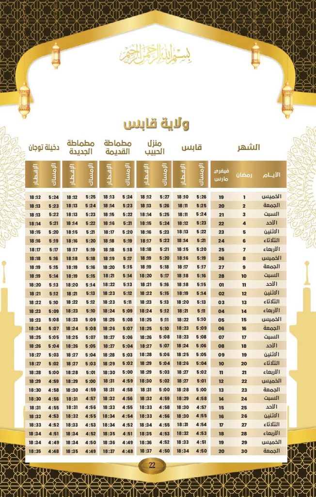 مواعيد الافطار و السحور في ولاية قابس: